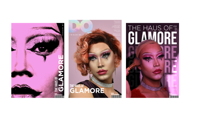 After deciding on a name by organising a small naming workshop inspired by one that was held during my time at a Brand Potential internship, I began developing mastheads. To begin the masthead design process, I considered three stylistic directions; GQ replication, Vogue-esque serif, and Drag Race season 13-inspired 3D type. Each one purposefully fits into a category or style – or in the GQ concept,directly replicates it – as that is what lies at the heart of drag. Drag parodies pop culture, masculinity, politics, and often society itself, so it felt apt to do the same within my masthead design.