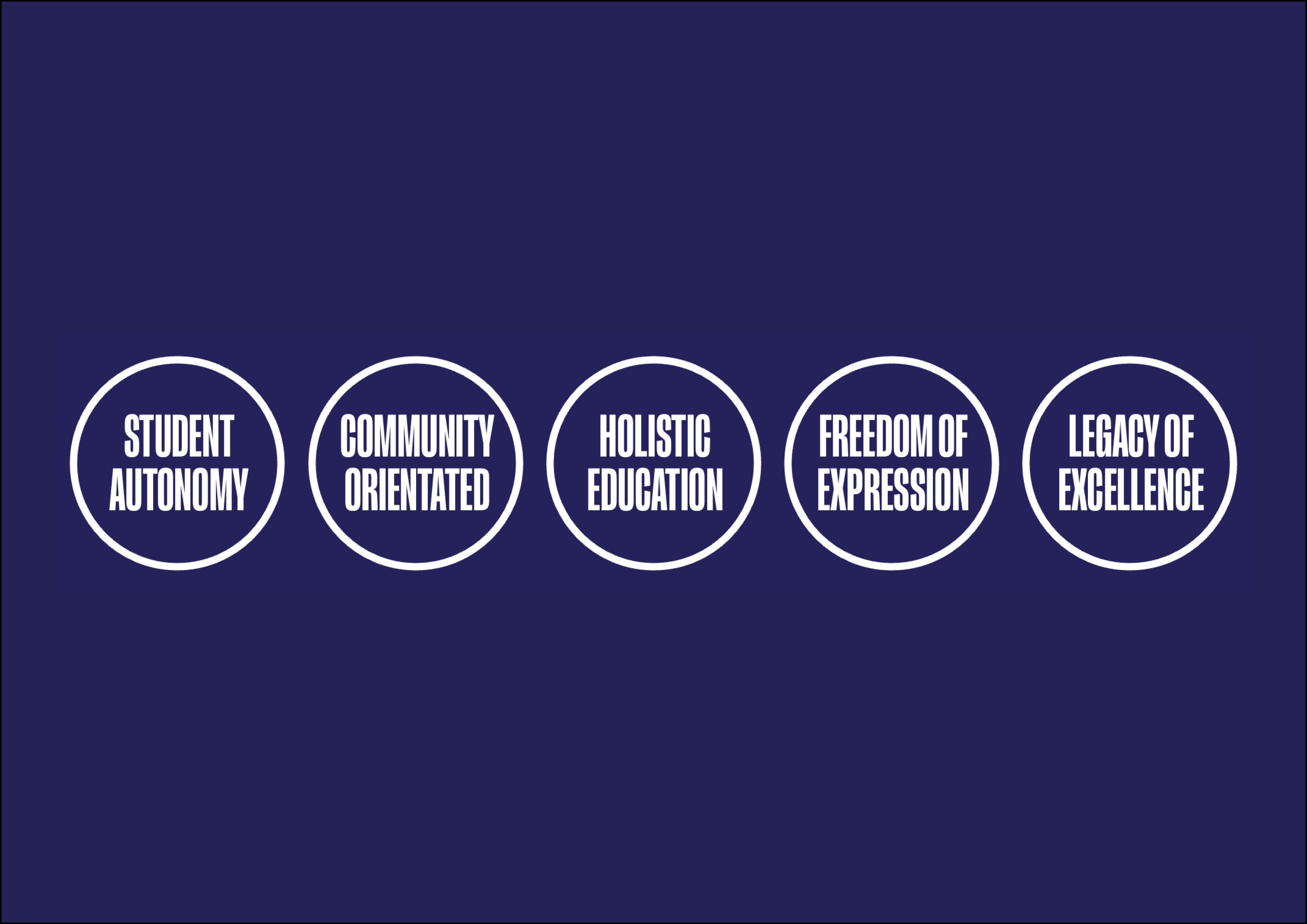 When visiting the school, we carried out a values workshop with various stakeholders, including staff, students and parents. We asked them to describe the school in one or two words, and we had a multitude of great answers. While some printed materials contained existing values, there was no consistency in their use. With this information, we narrowed down our findings into five new values that reflect ECP.