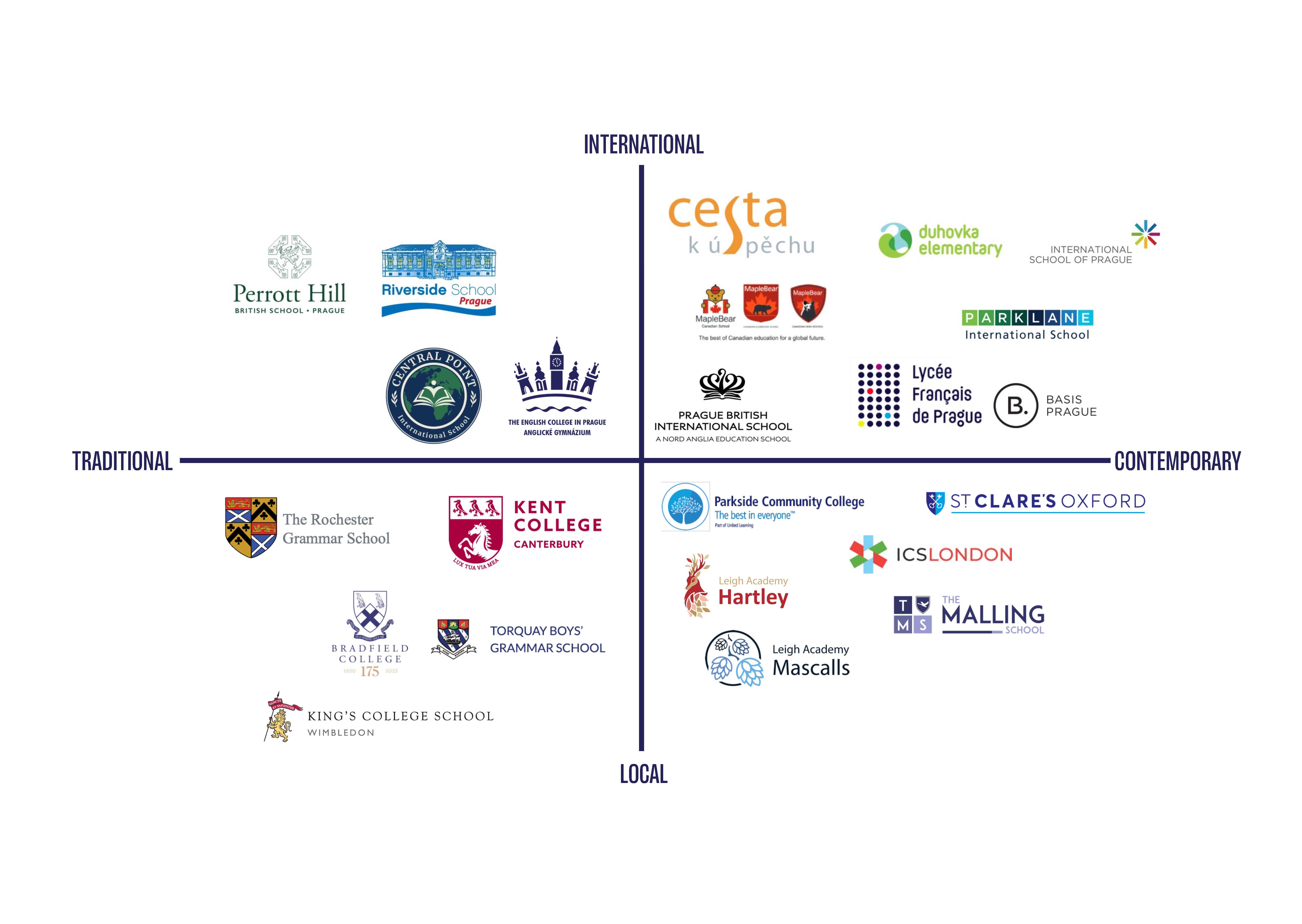 To carry out competitor research we completed a competitor matrix to look at the logos of 20 competitors, half of which are IB schools, with the other half being schools that share a similar age demographic. When placing ECP on this matrix it became clear that the school was sitting on the wrong side of the traditional vs contemporary spectrum so moving forward with the rebrand we aimed for ECP to match their contemporary approach to education by adopting this within their brand identity.