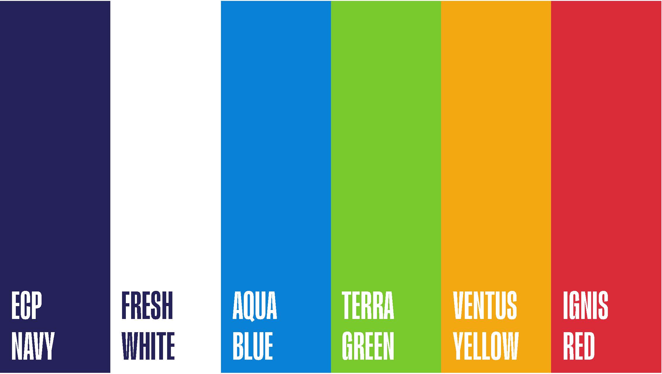 As the original ECP navy was derived from the iconic blue doors at the building’s entrance, we chose to carry this through into the refreshed colour palette. We paired it with a fresh white to reference the school’s newly painted exterior, and refined the house colours to ensure they speak the same visual language.